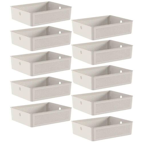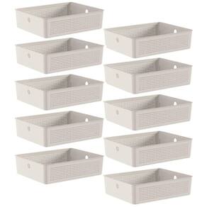 10 Caixas Organizadoras Multiuso Flow Bege 8,2L Ou Cestos Plásticos Closet Lavanderia.