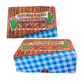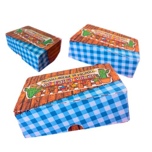 Deixe sua Festa Junina ainda mais charmosa com as Mini Caixas Kibunitinho Perfeitas para embalar paçoquinhas, brigadeiros, docinhos, lembrancinhas e pequenos mimos, nossas mini caixas trazem toda a alegria e tradição da festa para sua mesa. Com design exclusivo e 5 opções de estampas temáticas juninas, impressão de alta qualidade em papel offset 240g fosco e acabamento impecável, elas dão um toque especial à sua celebração. O kit inclui: 10 mini caixas desmontadas com a mesma estampa você escolhe a estampa no momento da compra Dimensões: 8cm comprimento x 5cm largura x 2cm altura - ideal para 3 paçoquinhas Características: Impressão de alta qualidade em papel offset 240g fosco 5 opções de estampas temáticas juninas vibrantes e acabamento gráfico fosco Montagem fácil e rápida por encaixe sem necessidade de cola Versatilidade para embalar paçoquinhas, brigadeiros, docinhos, lembrancinhas e pequenos mimos P: As caixas são enviadas montadas R: Não, as caixas são enviadas desmontadas para garantir que cheguem intactas até você. A montagem é simples e rápida, sem necessidade de cola. P: Posso escolher a estampa da caixa R: Sim Oferecemos 5 opções de estampas juninas exclusivas. Selecione a sua preferida no momento da compra. P: As paçoquinhas acompanham as caixas R: Não, as paçoquinhas não acompanham as caixas. P: Posso personalizar as caixas com meu logo Encante seus convidados com embalagens criativas e cheias de tradição Marca: Não Informado
