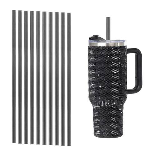 10 Canudo Reutilizavel Compativel Para Copo Com Strass 31Cm