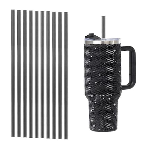10 canudo reutilizavel compativel para copo com strass 31cm Cor: preto Bem-vindo à nossa loja