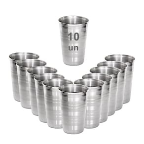 10 Copos Aço Inox Resistente Grande Cerveja Agua Suco 390ml 10 Copos De Aço Inox Resistente Grande Cerveja Agua Suco 390ml