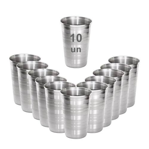 10 Copos Aço Inox Resistente Grande Cerveja Agua Suco 390ml 10 Copos De Aço Inox Resistente Grande Cerveja Agua Suco 390ml
