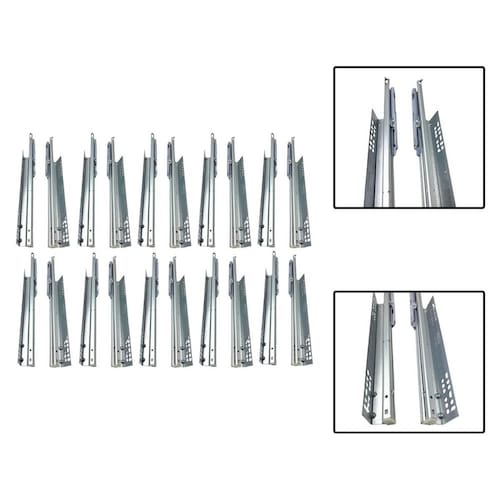 Aprimore seus móveis com o Kit de 10 Corrediças Telescópicas Ocultas Invisíveis com Amortecedor de 35cm Projetado para garantir uma suave e silenciosa, esse sistema oculto proporciona um acabamento sofisticado e discreto, valorizando qualquer ambiente. Com amortecedor integrado, evita impactos bruscos, prolongando a vida útil das gavetas e oferecendo mais conforto no uso diário. Ideal para móveis planejados, garante isolamento, resistência e alta qualidade Especificações: - Marca: Cermag; - Modelo: 030048003; - Material: Aço; - Quantidade de Corrediças: 10; - Capacidade de Carga Carga Dinâmica : 25kg; - Comprimento: 350mm; - Vão interno máximo: 800mm; - Com Amortecimento de Impacto; - Extração da Gaveta: Total; Conteúdo da Embalagem: - 10 Corrediças Telescópicas Ocultas Com Amortecedor 35cm. Marca: Não Informado Ean: 7898752279026