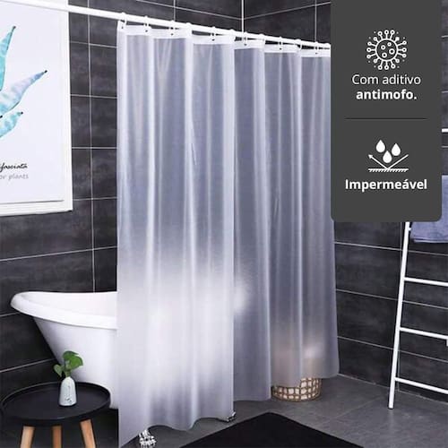 Por ter uma transparência fosca ela bloqueia a visão, porém permite a entrada de luz mantendo o ambiente claro. Seu material é flexível e macio, agradável ao toque e com caimento perfeito. Além disso, evita que água se espalhe por todo o ambiente durante o banho.