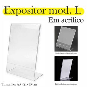 Display porta papel folha A5 ou expositor porta papel folha A5 de mesa e balcão.Formato: L inclinadoDivulgue diversos tipos de conteúdo de forma simples, fácil e eficiente.O que Expor nesse Display:- Cardápio- Pix.- Qr Code.- Fotos.- Papel e Folha em geral.- Aviso.- Propaganda.- Lembrete.- Comunicação Interna e Externa na Empresa.- Qualquer tipo de divulgação que você queira expor.Onde usar e colocar:- Mesa.- Balcão.- Qualquer tipo de local você pode colocar o display em cima para expor sua mensagem.Instrução de uso:Utilizar o produto em pé, no formato vertical.Características:- Peça fabricada com cortes, acabamentos e dobras.- Não amarela com o tempo.- Excelente resistência e durabilidade.- Material ACRILICO 2MM rígido, bem forte e resistente. Marca: Indústria Fenix