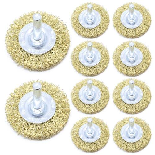 10 Escova De Aço Circular Para Furadeira 50X12Mm 4'' Haste 1/4 Kit com 10 Escova De Aço Circular para Furadeira 50x12mm 4'' com Haste 1/4