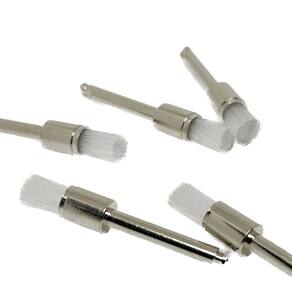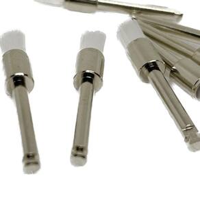 - Kit com 10 escovas de Robinson - Formato plano reto - Cor: Branca - Cerdas Macias - Indicada para o uso com Contra Ângulo - Autoclavável Marca: Aaf