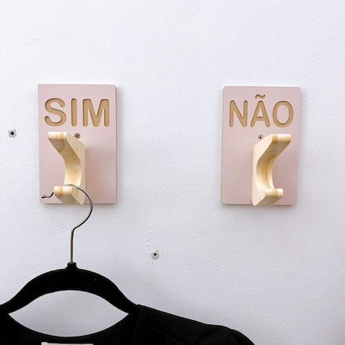 Trio de penduradores | Sim Não | com pino duplo Ideais para uso comercial em provadores de loja, facilitando a escolha das peças e mostrando todo o cuidado que o lojista moderno tem com seus clientes!