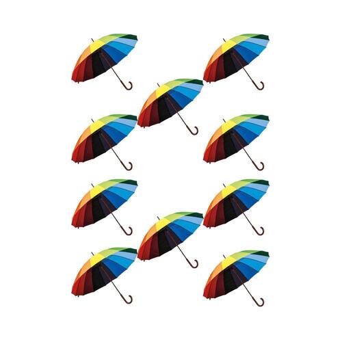 Kit 10 Guarda chuva Grande automático colorido com 16 cores Feito com material de alta qualidade sua estrutura e varão totalmente reforçado em metal e aço com 16 varetas resistentes podendo suportar chuva e ventos fortes sem correr o risco de quebrar com facilidade. Seu design moderno combina com diversos estilos e gostos, Além disso ele possui formato grande de 1,35 cm aberto,podendo proteger mais de 2 pessoas sem molhar com sistema de acionamento automático presionando apenas um botão seu tecido pongee permite secagem rapida.. Desfrute do conforto que este guarda chuva pode te oferecer seja em eventos, hoteis, estacionamentos, com a familia no sol ou na chuva ele irá atender suas necessidades.... Especificações do produto Comprimento aberto: 135 cm parte de cima Comprimento aberto: 114 cm parte de baixo Comprimento fechado: 92 cm Material : metal,aço,borracha Tecido: pongee Peso total do produto: 350g ATENÇÂO: Os cabos dos guarda chuva poderão ser enviados na cor preta ou marrom dependendo da disponibilidade de nosso . Marca: Não Informado Ean: 7890435300621