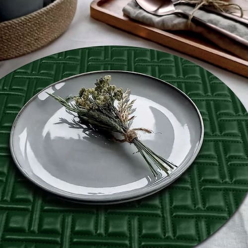 Esse Jogo Americano possui lindo desenho em relevo acentuado proporcionando um excelente efeito visual à mesa e combina com diversos tipos de louças e ambientes. Feito com material de alto padrão de qualidade, sua gravação imita costuras com perfeição, mas ao mesmo tempo ele não retém resíduos de alimentos e é muito fácil de limpar proporcionando praticidade para o dia a dia.