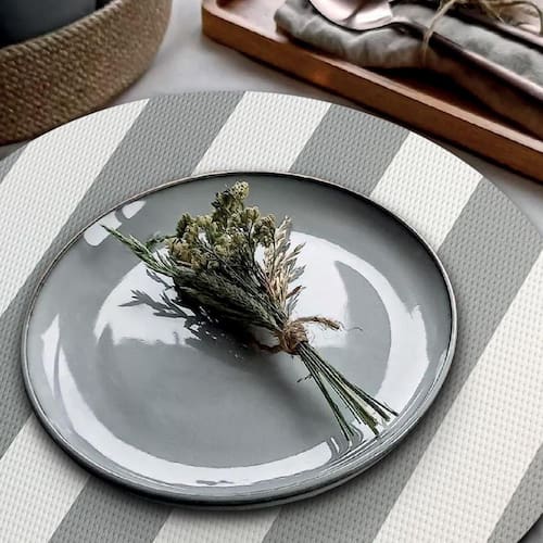 Alto padrão - mesa elegante em todos os momentos esse jogo americano proporciona um excelente efeito visual à mesa e combina com diversos tipos de louças e ambientes. feito com material de alto padrão de qualidade, não retém resíduos de alimentos e é muito fácil de limpar proporcionando praticidade para o dia a dia. vantagens - material de alto padrão - impermeável - prático e versátil - flexível e resistente - design exclusivo - fácil de limpar: basta passar um pano úmido e sabão neutro contém: 10 peça s dimensões: 38cm de diâmetro material: pvc somos fabricantes, por isso o melhor preço para esse produto. um produto exclusivo idealiza comercio de utilidades