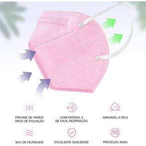 Máscara KN95 WWDoll é uma excelente opção para quem procura ter conforto usando máscaras por longos períodos e também para proteção de poluição, gás residual, fumaças industriais, entre outros. Dispõe de dois elásticos laterais e clipe nasal, que se destinam ao apoio e ao ajuste atrás das orelhas do usuário. A máscara protege desde o topo do nariz até o queixo, cobrindo a maioria das conformações faciais conhecidas e mantendo-as protegidas. Permite respiração suave. Uso individual e doméstico. Material leve e confortável. Acima de 95% de eficiência contra partículas, germes e vírus, protegendo você e sua familia.