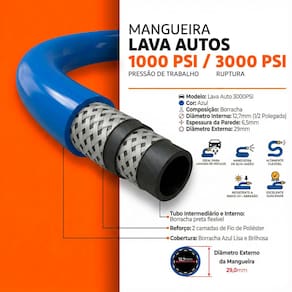 Mangueira Azul PVC Borracha Lava Auto é a escolha ideal para quem busca resistência, segurança e alto desempenho em sistemas de lavagem e pressurização. Desenvolvida para aplicações profissionais e domésticas, suporta alta pressão de trabalho e oferece excelente durabilidade mesmo em uso contínuo. Produzida em borracha de alta resistência, conta com reforço interno que garante maior proteção contra abrasão, torções e desgaste, mantendo o fluxo constante de água mesmo sob pressão elevada. Seu diâmetro interno de 1/2 polegada proporciona vazão eficiente, otimizando o desempenho em bombas pressurizadas e lavadoras.