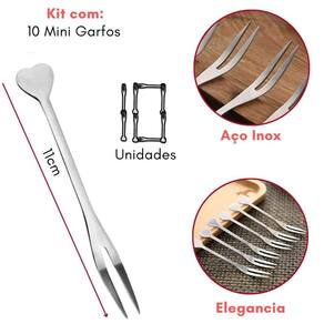 Kit com 10 mini garfos inox 11cm para petiscos. Apresentamos o kit 10 mini garfos coração inox petiscos mesa posta, a escolha perfeita para quem aprecia a elegância e a sofisticação na hora de servir. Com um design delicado em forma de coração, esses garfinhos são ideais para petiscos, proporcionando um toque especial às suas reuniões e jantares. Fabricados em inox, tanto a lâmina quanto o punho garantem durabilidade e resistência, além de serem fáceis de limpar. Com um comprimento total de 11 cm, são práticos e funcionais, adequados para qualquer tipo de mesa posta. A nilosdecor se destaca pela qualidade de seus produtos, e este conjunto não é exceção. A versatilidade dos garfos permite que sejam utilizados em diversas ocasiões, desde festas informais até eventos mais requintados, sempre com um charme inigualável. Ideal para quem valoriza cada detalhe na hora de receber amigos e familiares. Conteúdo da embalagem: 20 mini garfos inox para petisco Imagens meramente ilustrativas. ==================================== de 90 dias para defeitos de fabricação ==================================== Marca: Não Informado