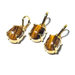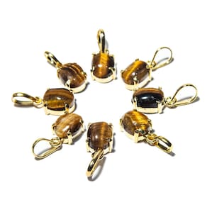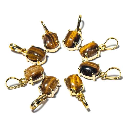 Mini Ponto de Luz Liso Olho de Tigre | Cabochão Liso na Garra Um pingente delicado, elegante e repleto de força simbólica. O Olho de Tigre é conhecido por sua coloração marcante e energia protetora. Com corte cabochão liso e montagem em garra, este pingente combina sofisticação com espiritualidade, sendo ideal tanto para o uso diário quanto para presentear com intenção. O que irá receber:\n10 pingentes com pedra natural de Olho de Tigre\nDetalhes do Pingente:\nPedra: Olho de Tigre Natural\nFormato: Mini cabochão liso\nTamanho da pedra: Aproximadamente 10 x 8 mm (pode haver variações leves)\nMontagem: Garra com presilha prateada\nPeso estimado da pedra: Cerca de 6 quilates\nBrilho: Sedoso e cintilante, com reflexos dourados típicos do Olho de Tigre\nOrigem da montagem: Curvelo - MG\nImportante: Pedra natural — pode haver pequenas variações de tonalidade e padrões\nSignificado do Olho de Tigre: O Olho de Tigre é uma pedra de proteção, coragem e foco. Muito utilizada como amuleto contra energias negativas, ela fortalece a força interior, estimula a ação e ajuda na tomada de decisões. É amplamente associada à estabilidade emocional, força de vontade e clareza mental. Observações:\nProduto artesanal: pequenas variações na pedra e no acabamento são normais e valorizam a autenticidade da peça\nFotos ilustrativas: os padrões e cores podem variar de acordo com o lote disponível\nPresenteie com energia e estilo Este pingente une beleza natural e significado profundo — uma joia sutil, mas poderosa, perfeita para quem aprecia pedras naturais e quer carregar consigo uma fonte de energia positiva. Adicione ao seu acervo ou surpreenda alguém especial com esse presente cheio de intenção. Marca: CristaisdeCurvelo
