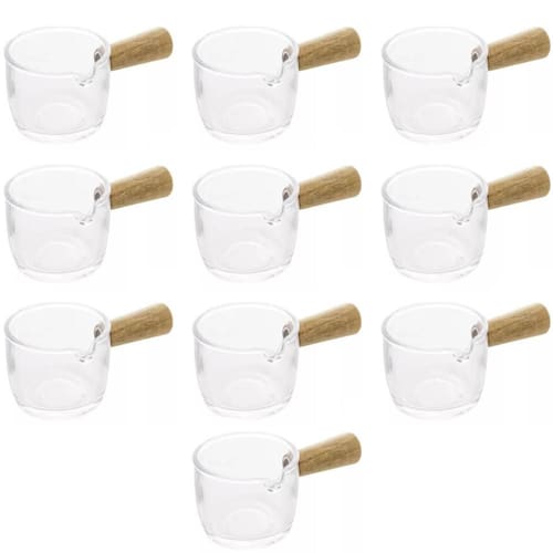 Kit 10 Molheiras Cremeiras de Vidro 100ml Cabos de Bambu Lyor Caldas Mesa Posta Molhos Shoyu.