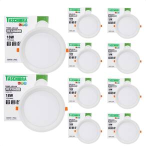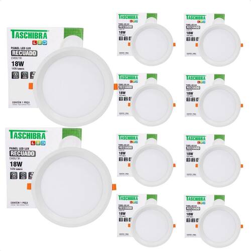 Kit 10 Painel de Led Redondo Embutir Recuado 18W Bivolt Taschibra 6500K Frio Características Gerais do Produto: Dimensões AxLxP CM : 1,6 x 17 x 17 Formato: Redondo Nicho do recorte CM : 15,5X15,5 Cor da luz: 6500K Frio Produzido em: Plástico de Engenharia, Anti-UV, Driver Onboard, Placa Interna em Alumínio e Componentes Eletrônicos Voltagem: Autovolt Utilizado em 110v e 220V Alimentação: Energia elétrica Cor acabamento: Branco Potência: 18W Fluxo luminoso: 1476 Lumens IRC: 80 Ângulo de abertura: 120 : 1 ano junto ao fabricante Aplicação: Embutir Vida útil: 20.000 horas Acompanha lâmpada: Não necessita, LED já integrado Grau de proteção: IP20 Ajuste de intensidade Dimerizar : Não Acompanha o produto: 10 Painel Led Completo : 1 ano junto ao fabricante