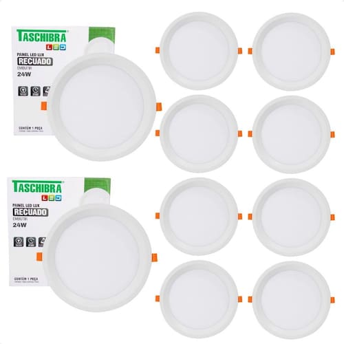 Kit 10 Painel de Led Redondo Embutir Recuado 24W Bivolt Taschibra 6500K Frio Características Gerais do Produto: Dimensões AxLxP CM : 1,6 x 22 x 22 Formato: Redondo Nicho do recorte CM : 21X21 Cor da luz: 6500K Frio Produzido em: Plástico de Engenharia, Anti-UV, Driver Onboard, Placa Interna em Alumínio e Componentes Eletrônicos Voltagem: Autovolt em 110v e 220V Alimentação: Energia elétrica Cor acabamento: Branco Potência: 24W Fluxo luminoso: 1968 Lumens IRC: 80 Ângulo de abertura: 120 : 1 ano junto ao fabricante Aplicação: Embutir Vida útil: 20.000 horas Acompanha lâmpada: Não necessita, LED já integrado Grau de proteção: IP20 Ajuste de intensidade Dimerizar : Não Acompanha o produto: 10 Painel Led Completo : 1 ano junto ao fabricante Marca: Não Informado