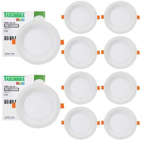 Kit 10 Painel de Led Redondo Embutir Recuado 6W Bivolt Taschibra 3000K Quente Características Gerais do Produto: Dimensões AxLxP CM : 1,6 x 9 x 9 Formato: Redondo Nicho do recorte CM : 7,5 X 7,5 Cor da luz: 3000K Quente Produzido em: Plástico de Engenharia, Anti-UV, Driver Onboard, Placa Interna em Alumínio e Componentes Eletrônicos Voltagem: Autovolt em 110v e 220V Alimentação: Energia elétrica Cor acabamento: Branco Potência: 6W Fluxo luminoso: 360 Lumens IRC: 80 Ângulo de abertura: 120 : 1 ano junto ao fabricante Aplicação: Embutir Vida útil: 20.000 horas Acompanha lâmpada: Não necessita, LED já integrado Grau de proteção: IP20 Ajuste de intensidade Dimerizar : Não Acompanha o produto: 10 Painel Led Completo : 1 ano junto ao fabricante Marca: Não Informado