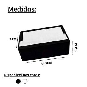 Cada suporte possui dimensões retangulares de 14,5 cm de comprimento, 9 cm de largura e 5,5 cm de altura, proporcionando um encaixe perfeito para guardanapos de papel TV. A mola integrada facilita a reposição dos guardanapos, tornando o serviço mais ágil e eficiente, essencial para o dia a dia de estabelecimentos de alimentação.