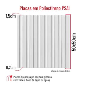 10 Placas Paineis Ripado Revestimento 3d De Pvc Para Parede Quantidade: 10 Placas Material: Poliestireno Alto Impacto Modelo: Ripa Cor: Brancas com acabamento fosco e corte a laser. Espessura: 0.5mm Tamanho: 50x50 Nossas placas de poliestireno são exclusivas com corte a laser, oferecendo um acabamento fosco único no mercado, totalmente diferente do que você já viu. Fáceis de instalar, resistentes e adaptáveis, nossas placas transformam seus espaços com praticidade e estilo Instalação fácil, sem necessidade de profissional. Material resistente, com relevo que não amassa nem afunda. Instalação limpa, sem quebra-quebra. Ideal para paredes com umidade, mofo, textura, madeira e azulejo. Perfeito para ambientes internos e externos. Lavável para manter sempre como novo. de durabilidade por 10 anos. Dispensa pintura, economizando tempo e dinheiro. Fácil instalação com fita 3M, cola de contato ou cola PU. Cortes precisos feitos a laser para um resultado impecável. Transforme seu espaço com praticidade e estilo Área externa: Instalação com cola de contato e pintura obrigatória com tinta a base de água Área interna: instalação com fita dupla face, cola pu ou cola de contato e pintura opcional. A cor das placas nas fotos é igual à cor real do produto Resposta: As placas são na cor branca. Porém você pode aplicar tinta a base de água na cor de sua preferência, após a instalação. Posso colar as placas na parede com textura Resposta: Sim, você pode colar as placas em paredes com textura, desde que não seja chapiscado, mas é importante usar um adesivo de montagem adequado para garantir uma fixação segura. Qual é o peso de cada placa As placas acompanham fita dupla face Resposta: Não, você pode instalar com Cola Pu ou fita dupla face, ambas opções são vendidas separadamente. As placas se encaixam conforme o vídeo Resposta: Sim, nossas placas são projetadas para se encaixar de forma fácil e eficiente, conforme mostrado no vídeo demonstrativo. Preciso de uma quantidade maior do que a disponível no anúncio. Posso encomendar mais Resposta: Sim, se precisar de uma quantidade maior do que a disponível, basta solicitar e nós calculamos a quantidade de acordo com as medidas fornecidas e indicamos outro anúncio correspondente para efetuar a compra. Posso usar as placas 3D em áreas externas descobertas Resposta: Sim, nossas placas são adequadas para uso em áreas externas descobertas, desde que instaladas corretamente e de acordo com as orientações do fabricante. Elas são resistentes a condições climáticas, mas recomendamos consultar as especificações de cada modelo para garantir a durabilidade ideal.