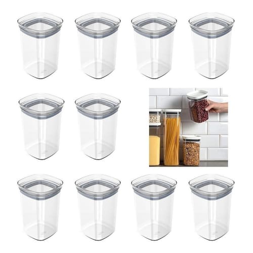 10 pote hermético organizador cozinha mantimentos block 1 l Cor: transparente Maple decor F6166 Conteúdo: 10 pc organizador hermético block retangular 1 l Dimensões 10,5 x 10,5 x 16cm Organizador hérmeticos block pote vedação herméticos Pode ser montados em blocos, empilháveis Adaptando a qualquer tipo de armário, e varias organizações. Como alimentos da cozinha, doces, escritórios, capsulas de café O pote com vedação e bpa free armazena e conserva os alimentos. Por os potes serem transparentes, tem-se a facilidade de visualização do que está armazenado sem precisar abrir os recipientes. O recipiente pode ser empilhado, assim ocupando espaços reduzidos de armários e bancadas. Conserva os alimentos por mais tempo. Empilhável e modular. pote porta mantimento vedação hermética em silicone livre de bpa armazene seus alimentos práticos, e modulares. empilhe, encaixe e enxergue facilmente o conteúdo. Práticos, herméticos e modulares os organizadores block são indispensáveis para auxiliar você na organização da sua cozinha. Material: - poliestireno; - silicone. O pote possui sua tampa com vedação em silicone, que bloqueiam a entrada do ar, protegendo o alimento do ambiente externo, mantendo-os com sua textura e sabor por mais tempo. É perfeito para armazenar biscoitos, cereais e variados tipos de alimentos com segurança. Marca: Não Informado