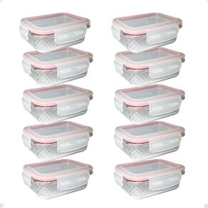 10 potes de vidro diamond retangular 370ml vermelho hermético 6 potes de vidro diamond retangular 370ml vermelho hermético