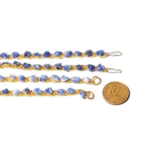 Observação Importante: Esta pulseira foi projetada para ser uma opção econômica e acessível. A pedra de sodalita está colada na corrente e, com o tempo, pode soltar-se. Recomendamos que leia atentamente e entenda esta característica antes da compra. Características Especiais: