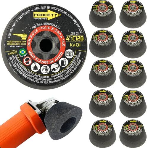 10 rebolos copo cônico 4 polegadas grão 120 rosca m14 mármore porcelanato granito forcety 10 rebolos copo cônico 4 polegadas grão 120 rosca m14 forcety. Rotação máxima 9023 rpm. Medidas 10,16cm x 5,08cm. Para trabalhos a seco ou refrigerados com água. Indicado para desbastes, retificações, acabamentos e boleamentos. O rebolo copo cônico 10x5cm grão 120 forcety é ideal para desbastes, retificações, boleamentos e acabamentos em mármores, granitos, ardósias, porcelanatos, granilites, cerâmicas, entre diversos outros materiais rochosos. Projetado para oferecer eficiência, durabilidade, confiabilidade e resultados excepcionais, é perfeito para profissionais e entusiastas de reformas e construções. Não à toa, é o rebolo número 1 das marmorarias, azulejistas e oficinas de todo brasil O rebolo cônico 4 polegadas forcety é fabricado com diamantes industriais premium e carbeto de silício sic , uma cerâmica fina sintética e semicondutora que se destaca em uma ampla gama de artigos do mercado industrial. Conta com a qualidade e a de fábrica forcety, empresa brasileira, a qual tem como compromisso, a excelência e qualidade na fabricação de seus produtos. Proporciona assim, não apenas um desempenho eficaz, mas também, a confiança no respaldo de uma marca brasileira, reconhecida em todo território nacional. A rosca do rebolo forcety segue no padrão universal m14, a qual permite uma fácil e simples instalação em lixadeiras, esmerilhadeiras e politrizes. Basta rosquear e a instalação está concluída. Caso seja utilizada em conjunto com um adaptador pino m14 não incluso é possível conectar também em furadeiras e parafusadeiras. Em alguns lugares é chamado de pé de burro, ou ainda, de copo cônico de desbaste. O nome varia de acordo com a região do brasil. Independente do nome, só uma certeza: o rebolo forcety é versátil e poderoso corrige imperfeições do corte, arredonda bordas, faz boleamentos, remove arestas vivas e cria acabamentos suaves. Pode trabalhar a seco ou refrigerado a água, o que proporciona um processo mais rápido, sem gerar calor excessivo. Dessa forma, seja no desbaste, no boleamento ou no polimento, o rebolo forcety é a melhor opção. Benefícios: 1. Versatilidade: utilização em ampla variedade de materiais rochosos. Atende ao mais diversos projetos. 2. Desempenho superior e inigualável: o carbeto de silício com diamantes garante um desempenho de desbaste inigualável e duradouro. 3. Fácil adaptação: rosca padrão m14 com compatibilidade universal às mais diversas lixadeiras, esmerilhadeiras, politrizes, elétricas ou pneumáticas, entre outras máquina com conexão m14. 4. de fábrica: respaldado e de fábrica forcety, o que proporciona tranquilidade, comodidade e segurança. Especificações: 10 rebolos copo cônico 4 polegadas m14 grão 120. Trabalho: a seco ou refrigerado com água. Diâmetro: 4 polegadas 100mm 10,16cm x altura 5,08cm. Velocidade: 9023rpm. Rosca: m14. Material: carbeto de silício sic com diamantes. Feito para ser conforme norma abnt nbr 15230. Peso unitário: 0,55kg. Medidas unitário: 10 x 10 x 5cm. Marca: forcety. : 3 meses. Recomendações importantes antes do uso: Verificar se o rebolo está bem fixo ao equipamento; Verificar se a seta indicativa do disco coincide com o sentido de giro do equipamento; Desbaste sem forçar muito o rebolo e aplique força só conforme a necessidade; Utilizar preferencialmente em bases fixas; Compatível com as principais marcas de ferramentas do mercado. Utilize sempre epi para trabalhos com mais segurança. Confira o grão desejado, antes de concluir a compra. Não fazemos alterações posteriores em pedidos. Imagens do anúncio são ilustrativas.