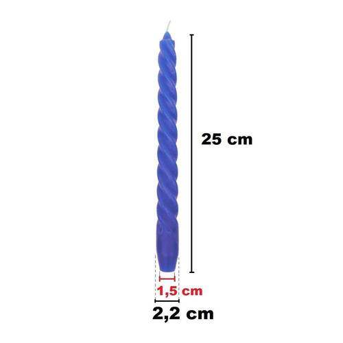 10 Vela Torcida 25 Cm Azul Escuro Decoração Festa castiçal 10 Velas Torcida 25 cm azul escuro Medidas: Diâmetro da base máximo: 2,2 cm Altura: 25 cm