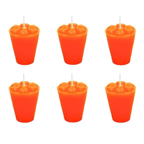 10 velas refil laranja copinho de pinga decoração 12 horas 10 velas laranja refil para o copinho de vidro Não acompanha o copinho de vidro Medidas da vela: - altura: 5,2 cm diâmetro superior boca : 4,5 cm diâmetro inferior base : 2,7 cm Produtos da marca velitas. Somos uma fábrica, de velas e ferros decorativos, com mais de 32 anos de experiência. Copinho de vidro - o copo de vidro, para qual a vela foi produzida, é da nadir figueiredo, além de ser resistente ele é facilmente encontrado em vários lugares no brasil. Medidas do copo: Altura: 7 cm diâmetro superior boca : 5,2 cm diâmetro inferior base : 3,5 cm - foto da vela no compinho meramente ilustrativa, copo não acompanha produto. Velas: -velas de parafina pura, contêm apenas corante nas velas coloridas. - a vela pura garante uma maior durabilidade, não produz fumaça preta que possa sujar a parede ou criar um aspecto desagradável, e também possui um cheiro suave e natural da parafina. - nossas velas foram projetadas para queimarem sem escorrer se deixadas fora de correntes de ar. - nossas velas no copinho foram projetadas para fácil reposição já que são removíveis; o produto acompanha indicações de uso para facilitar a limpeza do copo após a utilização. Duração da vela: Aproximadamente 12 horas, o tempo pode variar de acordo com a temperatura ambiente. -possuímos outras cores em outros anúncios: amarela, marfim, laranja, vermelha, rosa, lilás, azul clara e verde. Procure o mesmo nome de produto e a cor desejada para achar o anúncio da cor escolhida. Aviso de segurança:- acenda as velas longe de produtos inflamáveis, sem corrente de ar e em recipiente protetor. - não deixe velas acesas desacompanhadas. Marca: Velitas (r)
