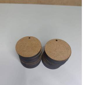 Chaveiro em MDF 3mm, é cortado a laser redondo com furo