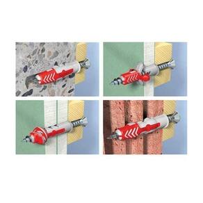 A DuoPower da fischer oferece bons valores de fixação graças aos 2 componentes:o componente cinza de nylon de alta qualidade ativa automaticamente, independentemente do material de construção, o princípio de funcionamento ideal expansão, adaptação, torção para uma melhor aderência. A ala de expansão dos componentes vermelhos reforça a expansão segura e oferece segurança adicional aos componentes cinzentos. Rotação simples do parafuso e u0022extraçãou0022 correta no final. Parafuso não gira excessivamente. O rebordo incorporado na cabeça da bucha impede que esta se afunde na perfuração.Vantagens- Dois materiais componentespara os melhores níveis de carga e funções inteligentes, dependendo da superfície.- A melhor resposta possível fator Feelgood das buchas. É visível quando a bucha fixa perfeitamente.- A borda da bucha impede que ela escorregue para dentro da perfuração.- As bordas anti rotação impedem que a bucha gire também.- Devido à sua grande profundidade de ancoragem a DuoPower é especialmente apropiadas para fixações en materiais perfurados, concreto poroso e para placas de gesso.Compatíveis:concreto, Tijolo sólido, Concreto celular, Tijolo verticalmente perfurado, Tijolo perfurado de silicocalcário, Gesso cartonado, Placa de gesso e placas de fibra de gesso, Blocos ocos em concreto, Lajes de pavimentos com cavidades, em tijolo e concreto ou , Pedra naturalAglomerado, Painel sólido de gesso, Tijolo sólido em cocretoFuncionamentoA DuoPower também é adequada para montagem através de instalação pré posicionada e de encaixe.A composição dos dois materiais e as múltiplas habilidades de funcionamento expansão, adaptação e fixação expandem a variedade de aplicaçõespara cargas médias-altas.O comprimento do parafuso requerido é dado por: o comprimento da bucha + espessura do material à fixar + o comprimento do diâmetro do parafuso.Adequado para parafusos de madeira, bem como parafusos aglomerados.No caso de placas de fixação, a parte não rosqueada do parafuso não deve ser maior que a espessura.Carga:concreto = 110 kgBloco = 25 kgDrywal = 15 kg Marca: Não Informado
