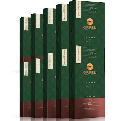 10 Caixas com 10 Cápsulas de Café Orfeu Intenso Peso Líquido Total: 500g 5g por cápsula