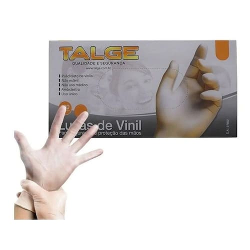 Descrição: Ca: 27.802 Ncm: 3926.20.00 Tamanhos: p 7 , m 8 e g 9 Comprimento: 240mm Espessura: palma 0,05mm Cor: transparente Material: vinil Caixa com 100 unidades 50 pares Marca: talge Marca: Não Informado Ean: 789171331990