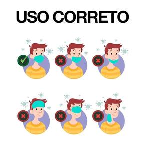 - Coloque a máscara em frente ao rosto, cobrindo as áreas do nariz e da boca, e prendendo o elástico na orelha e molde o clipe ao seu nariz.