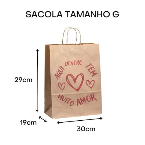 100 Sacolas Amor Kraft G Atacado Envio Rapido