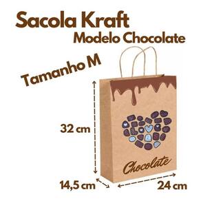 SACOLA DESENHO "CORAÇÃO" ESCRITO "CHOCOLATE"