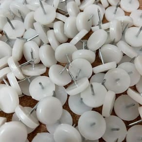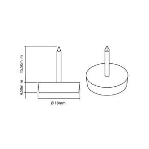 Kit com 100 Sapatas Prego 18x4,5mm tamanho do produto após instalação Preserva a superfície de apoio contra arranhões e outros danos mecânicos causados por esforços de movimentação. Seu sistema de fixação garante maior segurança e durabilidade.Ideal para mesas, cadeiras, poltronas e móveis-Cor: Branco-Protegem pisos e outras superfícies de riscos e danos causados pela movimentação de móveis e outros objetos-Dimensões:Altura da base: 4,5mmAltura total: 20mmAltura do prego: 15,5mmLargura: 18mm Marca: Não Informado
