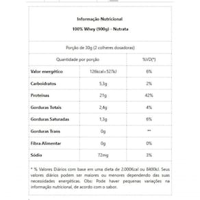 100% Whey (900g) - Sabor: Baunilha 100% WHEY (900g) - NUTRATA 100% WHEY, é um produto elaborado com a WPC (Proteína concentrada do soro do leite). Possui alto valor nutricional, elevado teor de aminoácidos essenciais, com destaque para os de cadeia ramificada, auxiliando no ganho de massa muscular. Caracterizada como proteína de alto valor biológico, é melhor aproveitada pelo organismo, além de possuir peptídeos bioativos do soro. 100% WHEY possui tecnologia CFM CROSS FLOW MICROFILTRATION, um processo de obtenção das proteínas a partir do soro do leite através da micro filtragem por fluxo cruzado, que consiste na filtração em membranas de cerâmica com micro furos de diâmetros diferentes. Com rígido controle de temperatura e pH, sem acréscimo de aditivos químicos. Este moderno processo tecnológico, preserva frações de peptídeos bioativos como lactoalbuminas, lactoferrinas, imunoglobulinas e GMPs. BENEFÍCIOS: * TECNOLOGIA CROSS FLOW MICROFILTRATION TÉCNICA DE MICROFILTRAÇÃO ISENTA DE PRODUTOS QUÍMICOS;* 100%WPC;* ELEVADA CONCENTRAÇÃO PROTEICA POR DOSE;* LOW CARB;* BAIXO TEOR DE SÓDIO;