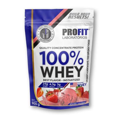 100% Whey Concentrate Protein Refil 900g Profit Labs Sabor: Morango Eleve seu desempenho com o 100% Whey Quality Concentrate Protein, uma proteína de alta qualidade formulada para maximizar os resultados de quem busca crescimento muscular. Cada porção oferece 24g de Whey Protein Concentrado WPC , aliado a uma concentração robusta de BCAA e 3g de creatina, essenciais para potencializar os treinos de força e promover a recuperação muscular.