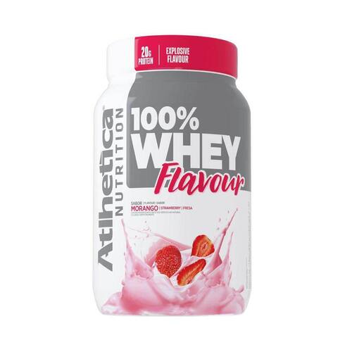100% Whey Flavour 900g Morango Atlhetica Nutrition Mundialmente conhecido para práticas esportivas, treinos e atividades físicas, whey protein - a proteína isolada do soro de leite - é utilizada como suplemento alimentar para hipertrofia muscular, o famoso ganho de massa magra. Este ganho acontece porque a proteína está ligada diretamente a construção dos músculos e tecidos.