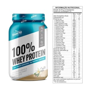 100% whey protein concentrado pote 900g baunilha shark pro Sabor: baunilha 100% whey protein - 26g de proteína por porção Obtenha poder e nutrição essenciais para seu treino com nosso 100% whey protein. Cada porção contém 26g de proteínas e 5,8g de bcaas, além de ser rico em vitaminas b12 e b6. Benefícios: - ideal para maximizar desempenho, recuperação e crescimento muscular. - textura cremosa e sabor delicioso, fácil de misturar com água ou leite. - complementa sua dieta diária para alcançar suas metas de treinamento. Por que escolher 100% whey: - ideal para quem busca aumentar a ingestão de proteínas de alta qualidade. - formulação exclusiva com alta concentração de aminoácidos, especialmente bcaas, com alto valor biológico. Recomendado para adultos acima de 19 anos ou conforme orientação profissional. Conservação: - conservar em local fresco, seco e ao abrigo da luz após aberto. Advertências: - este produto não é um . - não substitui uma alimentação equilibrada. - pessoas com enfermidades devem consultar um médico ou nutricionista antes de consumir. - manter fora do alcance de crianças. - não exceder a dose diária recomendada. - gestantes e lactantes devem consultar um médico ou nutricionista antes de consumir. Marca: Não Informado