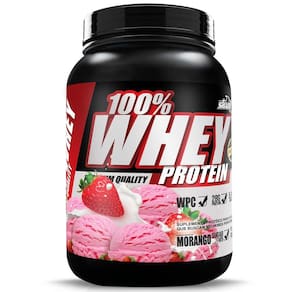 Suplemento proteico para aumento de performance, ganho de massa muscular e força.Quando se fala de ganho de massa muscular magra, o 100% whey protein é o um dos melhores 26 gramas de proteínas de alto valor biológico + 5.1 bcaas por doseO whey é parte não coagulada do leite, representa 80 - 90% de proteína. No soro do leite também são encontrados aminoácidos como a beta-lacto-globulina, alfa-lacto-albumina, albumina do soro bovino, imunoglobulina e glicomacropeptídeos, dentro da cadeia de aminoácidos essenciais e não essenciais.Sendo um suplemento fundamental na dieta de qualquer pessoa de qualquer idade. Inclusive para idosos, já que ingestão de proteínas ajuda na construção e manutenção dos nossos músculos.O 100% whey traz o maior índice de valor biológico natural que se tem atualmente, sendo que o leite materno tem 90% de imunoglobulina, o 100% whey tem 50%, ou seja, é muito próximo de um alimento primário de qualidade.Com ele você consegue ingerir a quantidade necessária de proteínas para que juntamente com seu treino, você ganhe massa muscular e a hipertrofia que só os atletas de alto desempenho tem.Com o 100% whey protein shark você tem:+ energia durante os treinos ou atividades físicas+ resistência+ ganho de massa muscular+ volume muscular+ hipertrofia+ performance+ qualidade de vida+ diminui o risco de doenças infecciosas e também as consideradas crônicas ou degenerativo estímulo ao sistema imunológico+ auxilia na proteção da mucosa gástrica.+ ajuda na proteção de problemas cardiovasculares e osteoporose.O 100%whey protein é perfeito para esportistas como:- jogadores de futebol, voley, basquete, handbol- ciclistas, triatletas, nadadores- fisiculturistas, praticantes de musculação, pilates, lutas dentre outras atividades físicas- pode e deve ser consumido por idosos com orientação médica, melhorando muito o bem estar de pessoas na melhor idadeSabor: Morango
