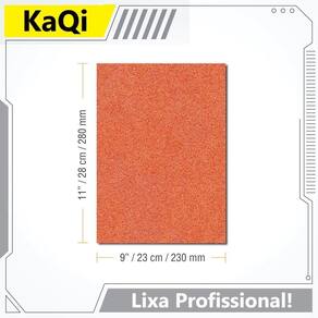100 x Lixas dÁgua 28x23cm Desbaste Seco Úmida Massa Parede Teto Auto Folha KaQi GRÃO: 120 100 x Lixas À Prova DÀgua 28cm x 23cm Folha KaQi. Eletro-revestida. Óxido de Alumínio. Ideal para Lixamento à Seco e Úmido. A lixa à prova dágua 28 x 23cm da KaQi possui papel abrasivo impermeável de excelente qualidade. Produzida com mineral óxido de alumínio, resistente ao rasgo, flexível. Indicado para serviços de lixamentos à seco ou úmido. Pode ser utilizada em acabamentos de peças metálicas, ligas de alumínio, de zinco, de cobre, perfis ondulados, madeiras, tintas, vernizes, massas, lixar parede e teto, aços, inox, metais não-ferrosos, plásticos, vidros, titânios, couros, entre outros materiais. Por exemplo: na uniformização da textura de tintas; na eliminação de defeitos na pintura; em acabamentos de massa corrida PVA e acrílica; massa corrida; recuperação de janelas; lixamento de chapas, portas e móveis de aço; operações de funilaria e pintura automotiva; construção civil; artesanatos... Enfim, desde a preparação até o acabamento, por ser fácil de limpar e de usar, durável e leve, flexível, possui melhor manuseio durante o lixamento. Dessa forma, desempenha um papel fundamental em todos os processos de oficina. Além disso tudo, conta com eletro-revestimento, método que utiliza uma corrente elétrica para depositar a tinta na superfície da lixa, garantindo revestimento eficiente e absoluto no produto, proporionando excelente durabilidade externa. Ao contrário do revestimento por spray ou revestimento em pó, cada camada de partícula de tinta adere à superfície da peça. Isto resulta em melhor disperção dos grãos abrasivos pela lixa, enquanto oferece resistência incomparável à corrosão. Grãos Variados. Selecione no anúncio a granulometria desejada para sua compra. Sua grande variedade de grãos permite que ela seja Utilizado em todas as etapas do processo, desde o desbaste mais pesado até o acabamento final. Selecione o grão com atenção, uma vez que não são feitas alterações posteriores em pedidos. A granulometria nada mais é do que a medição da distribuição dos grãos em uma superfície. Em geral, as lixas grossas são as de número 8 a 80, as lixas médias são as que variam entre 100 e 200, e por fim, as lixas finas cobrem uma gama maior de números, indo de 240 até 5000. Para desbastar ou seja, remover bastante material , é indicado usar uma lixa grossa. Já para polir e dar acabamento, é recomendado usar lixas menores - de médias a finas. Muitas vezes, são utilizadas em um só serviço diferentes tipos de grãos. Nesse caso, o ideal é iniciar com uma lixa mais grossa com menos grãos e ir aos poucos usando lixas mais finas com mais grãos . Dica: um cuidado deve ser tomado na hora de usar várias lixas de tamanhos diferentes. A lixa seguinte não pode exceder em mais de 50% do grão anteriormente. Por exemplo: se você começou com o grão 80, a próxima lixa deverá ser 50% superior, ou seja, grão 120. Isso permite que o grão mais fino remova os riscos deixados pelo grão mais grosso. Benefícios: Lixa à prova dágua em papel com excelente vida útil. Lixa altamente resistente. Grão de qualidade. Excelente custo benefício. Lixamento seco ou úmido . Qualidade em acabamento. Especificações: 100 x Lixas À Prova dÁgua 28cm x 23cm Retangular. Impermeabilização. Alta flexibilidade e durabilidade. Costado Resistente. Eletro-revestimento. Superfície totalmente lisa, sem furos. Marca: KaQi. Para operações manuais. Resistência à quebra da camada abrasiva e ao desgaste. Utilize sempre água limpa na lubrificação. Não mergulhe ou deixe as lixas acumuladas no balde antes ou após serem utilizadas. Esta ação pode danificá-las reduzindo seu tempo de uso, causar a contaminação de grãos e provocar riscos nas superfícies.