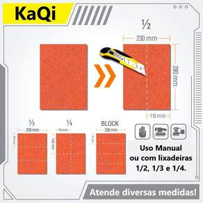 100 x Lixas dÁgua 28x23cm Desbaste Seco Úmida Massa Parede Teto Auto Folha KaQi GRÃO: 180 100 x Lixas À Prova DÀgua 28cm x 23cm Folha KaQi. Eletro-revestida. Óxido de Alumínio. Ideal para Lixamento à Seco e Úmido. A lixa à prova dágua 28 x 23cm da KaQi possui papel abrasivo impermeável de excelente qualidade. Produzida com mineral óxido de alumínio, resistente ao rasgo, flexível. Indicado para serviços de lixamentos à seco ou úmido. Pode ser utilizada em acabamentos de peças metálicas, ligas de alumínio, de zinco, de cobre, perfis ondulados, madeiras, tintas, vernizes, massas, lixar parede e teto, aços, inox, metais não-ferrosos, plásticos, vidros, titânios, couros, entre outros materiais. Por exemplo: na uniformização da textura de tintas; na eliminação de defeitos na pintura; em acabamentos de massa corrida PVA e acrílica; massa corrida; recuperação de janelas; lixamento de chapas, portas e móveis de aço; operações de funilaria e pintura automotiva; construção civil; artesanatos... Enfim, desde a preparação até o acabamento, por ser fácil de limpar e de usar, durável e leve, flexível, possui melhor manuseio durante o lixamento. Dessa forma, desempenha um papel fundamental em todos os processos de oficina. Além disso tudo, conta com eletro-revestimento, método que utiliza uma corrente elétrica para depositar a tinta na superfície da lixa, garantindo revestimento eficiente e absoluto no produto, proporionando excelente durabilidade externa. Ao contrário do revestimento por spray ou revestimento em pó, cada camada de partícula de tinta adere à superfície da peça. Isto resulta em melhor disperção dos grãos abrasivos pela lixa, enquanto oferece resistência incomparável à corrosão. Grãos Variados. Selecione no anúncio a granulometria desejada para sua compra. Sua grande variedade de grãos permite que ela seja Utilizado em todas as etapas do processo, desde o desbaste mais pesado até o acabamento final. Selecione o grão com atenção, uma vez que não são feitas alterações posteriores em pedidos. A granulometria nada mais é do que a medição da distribuição dos grãos em uma superfície. Em geral, as lixas grossas são as de número 8 a 80, as lixas médias são as que variam entre 100 e 200, e por fim, as lixas finas cobrem uma gama maior de números, indo de 240 até 5000. Para desbastar ou seja, remover bastante material , é indicado usar uma lixa grossa. Já para polir e dar acabamento, é recomendado usar lixas menores - de médias a finas. Muitas vezes, são utilizadas em um só serviço diferentes tipos de grãos. Nesse caso, o ideal é iniciar com uma lixa mais grossa com menos grãos e ir aos poucos usando lixas mais finas com mais grãos . Dica: um cuidado deve ser tomado na hora de usar várias lixas de tamanhos diferentes. A lixa seguinte não pode exceder em mais de 50% do grão anteriormente. Por exemplo: se você começou com o grão 80, a próxima lixa deverá ser 50% superior, ou seja, grão 120. Isso permite que o grão mais fino remova os riscos deixados pelo grão mais grosso. Benefícios: Lixa à prova dágua em papel com excelente vida útil. Lixa altamente resistente. Grão de qualidade. Excelente custo benefício. Lixamento seco ou úmido . Qualidade em acabamento. Especificações: 100 x Lixas À Prova dÁgua 28cm x 23cm Retangular. Impermeabilização. Alta flexibilidade e durabilidade. Costado Resistente. Eletro-revestimento. Superfície totalmente lisa, sem furos. Marca: KaQi. Para operações manuais. Resistência à quebra da camada abrasiva e ao desgaste. Utilize sempre água limpa na lubrificação. Não mergulhe ou deixe as lixas acumuladas no balde antes ou após serem utilizadas. Esta ação pode danificá-las reduzindo seu tempo de uso, causar a contaminação de grãos e provocar riscos nas superfícies.