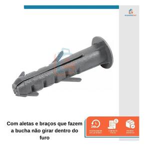 A Bucha é ideal para uso em paredes compactas de tijolo, cimento e concreto; auxiliando na fixação de armários, prateleiras, quadros acessórios de banheiro, etc. O anel dá um melhor acabamento, além de impedir que a bucha penetre no furo. Produzido polietileno de alta densidade, apresenta aletas e braços que fazem a bucha não girar dentro do furo. CARACTERÍSTICAS TÉCNICAS:Material: PolietilenoDiâmetro: 8mmComprimento: 40mmProfundidade mínima do furo: 55mmDiâmetro do parafuso: 4,5 - 6mmBucha com aba: SimQuantidade: 1000 unidadesMarca: IVPlastRef.: 2030365