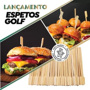 1000 Palitos - Palito De Bambu Golf 9cm - Gourmet Hamburguer 20 Vinte pacotes com 50 Espetos de Bambu Golf 9 Cm - 1000 unidades