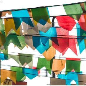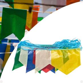 Decore a sua Festa Junina com a Bandeirinha Plástico Festa Junina Bandeirola Com um total de 1000 metros de comprimento, este produto é perfeito para decorar qualquer espaço, grande ou pequeno, e trazer o espírito festivo para o seu evento.