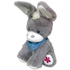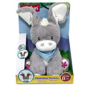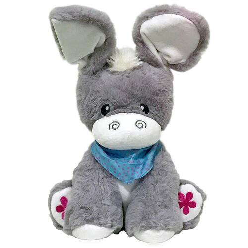 Esta é a pelúcia interativa meu amiguinho Esconde Esconde! Um burrinho muito lindinho! Com orelhas grandes e que se mexem quando pressionamos o botão que fica em sua patinha, Ao mesmo temo que meche a orelhinha canta lindas canções. Ah! ele tem 2 formas de funcionar, na parte de baixo dele há um botão onde você seleciona o modo Dia ou Noite. Quando selecionado o modo Dia, as musicas são alegres e contagiantes para envolver os pequenos na brincadeira. Já quando selecionado o modo Noite, musica tranquila e relaxante será produzida para ajudar o bebê a embalar no soninho gostoso! Fofinho, lindinho, da uma vontade de apertar! Ele tem aproximadamente 35 Centímetros de pura fofura. É um ótimo presente para crianças a partir dos 6 meses, com certificação pelo Inmetro. Vamos lá! garanta já o seu.